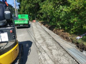 7月の今回は、江筋の流れを止めて、水路廻りの雑木伐採や草刈りをしました。